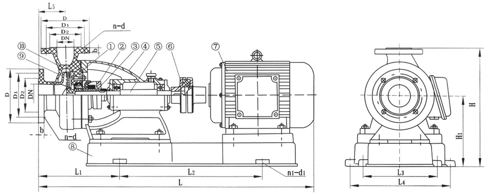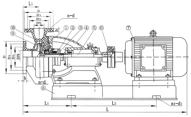 | 型號 | DN | D | D1 | D2 | b | n | d | DN | D | D1 | D2 | b | n | d | L | L1 | L2 | L3 | L4 | L5 | H | H1 | n1 | d1 | KW |