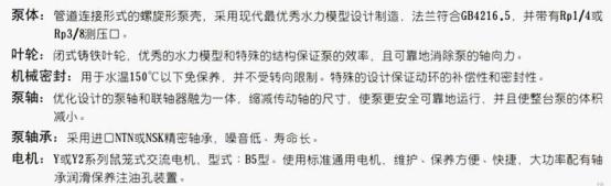 2、輸送介質(zhì)為清水或物理化學(xué)性質(zhì)類(lèi)似清水的其它液體。(輸送介質(zhì)帶有細小顆粒的應在訂貨時(shí)另行說(shuō)明,以便裝配耐磨式機械密封)。