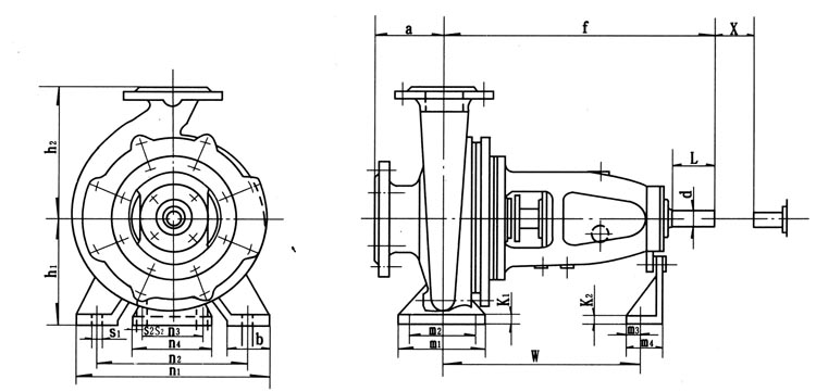 ISR系列單級單吸熱水離心泵的主要零件有泵體、葉輪、泵蓋、懸架部件,機械密封部件、軸等。該系列泵為后開(kāi)門(mén)結構,其優(yōu)點(diǎn)是轉子部件檢修或更換無(wú)須拆卸管道,轉子部件由懸架支撐哲(請參考ISR泵結構圖)。泵軸向力的平衡,軸向力較大的泵,葉輪設有平衡孔,其余軸向力由軸承承受。軸封形式采用不平衡單端面機械密封,軸封室外設有水冷卻套,可以通過(guò)泵側面1/4管接口接通外來(lái)冷水,對軸封進(jìn)行冷卻。傳動(dòng)方式,泵的傳動(dòng)是通過(guò)聯(lián)軸器與電機直聯(lián)。從傳動(dòng)方向看,泵為順時(shí)針旋轉。