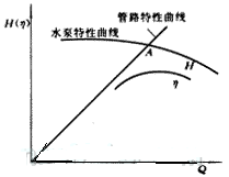 設計工作點(diǎn)為A,水泵流量為QA,揚程為HA.水泵實(shí)際運行時(shí)管路特性曲線(xiàn)不是Ⅰ,而是Ⅱ,運行工作點(diǎn)為B,流量QBA,且B點(diǎn)不在水泵高效區. 顯然這比第一種情況更為不利.解決的唯一辦法只能更換水泵.