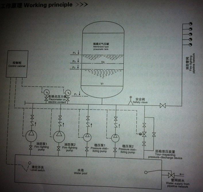 XQ系列消防氣壓給水設備工作原理示意圖