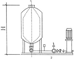 | 該設備采用囊式(隔膜)氣壓給水,當穩壓水泵處于低壓工作壓力P3時(shí),由壓力繼電器傳感信號通過(guò)電控箱自動(dòng)啟動(dòng)水泵向罐內補水,且同時(shí)增壓,當壓力達到高工作壓力P4時(shí),穩壓水泵自動(dòng)停止,此時(shí)的系統壓力在低工作壓力P3和高工作壓力P4之間變化。