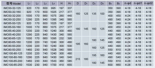 IMC型不銹鋼磁力泵】性能參數: