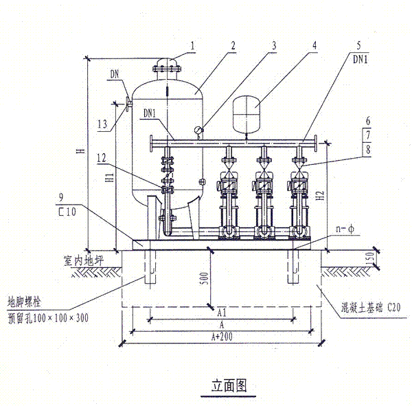 智慧型無(wú)負壓穩流設備立式罐安裝方法