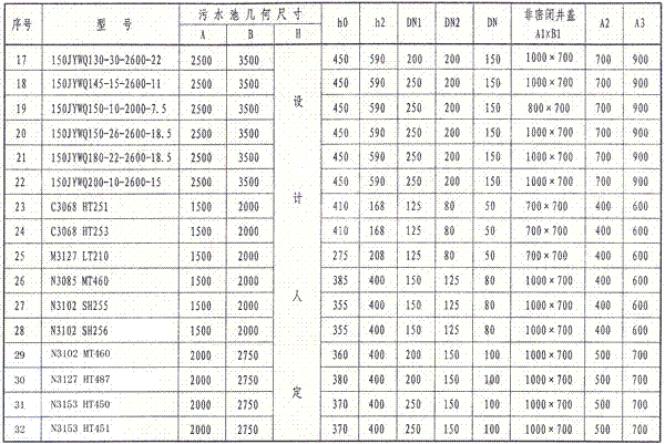 注:設計人員也可根據實(shí)際情況確定污水池(集水坑)的平面尺寸。污水池(集水坑)深度應小于等于6.0m.