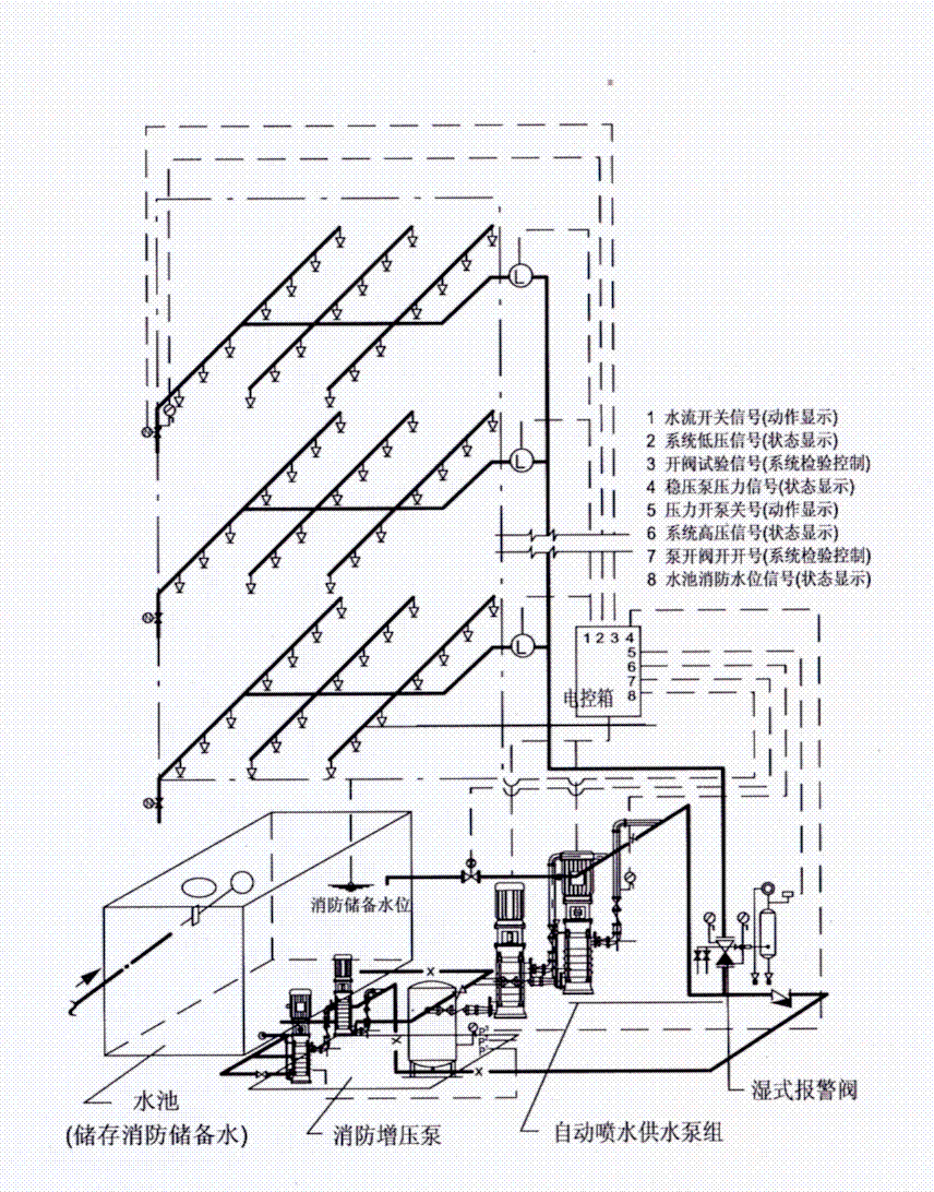 自動(dòng)噴水濕式系統(穩壓裝置穩壓)原理圖