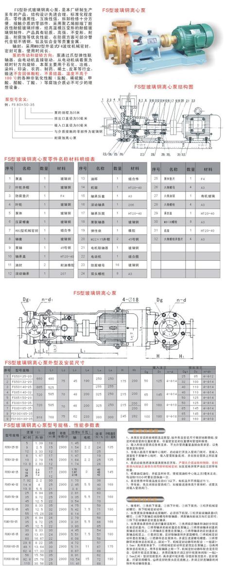 FS型軸聯(lián)玻璃鋼離心泵,主要用于石化、冶煉、染料、印染、農藥、制藥、稀土、化肥等行業(yè),輸送不含固體顆粒,不易結晶,FS型軸聯(lián)玻璃鋼離心泵溫度不高于100℃的各種非氧化性酸(鹽酸、稀硫酸、甲酸、醋酸、丁酸)等腐蝕介質(zhì)必不可少的理想設備。