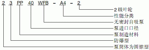 假設水泵的要求是:造型為圓錐型防爆型,其它要求同上,這臺水泵的完整型號為“2.4BXG40WFB-A4-2”。