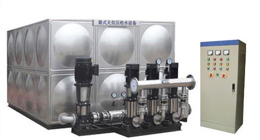 箱式管網(wǎng)疊壓供水設備是由水箱,防倒流裝置(根據需要設置),穩流罐,水泵機組,限壓保護裝置,膨脹罐,控制儀表,控制柜,閥門(mén),管路系統,配套附件等組成。