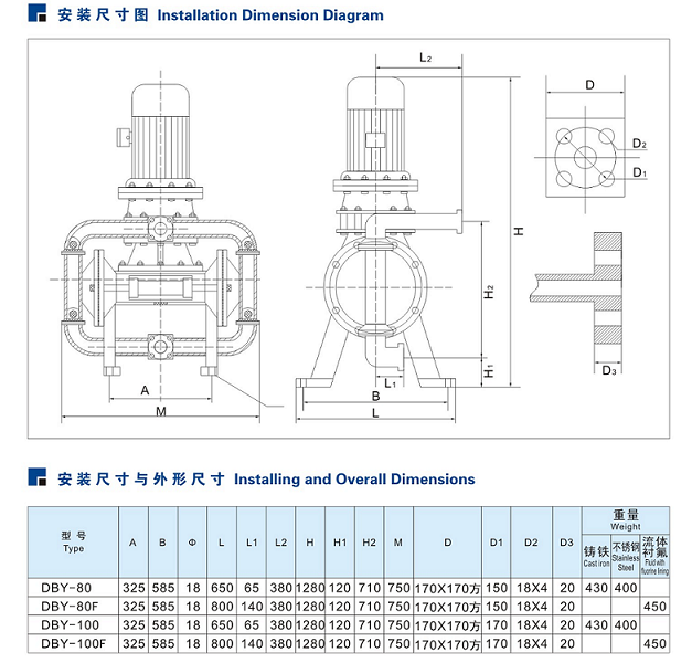 DBY-100立式臥式襯氟電動(dòng)隔膜泵安裝尺寸區別