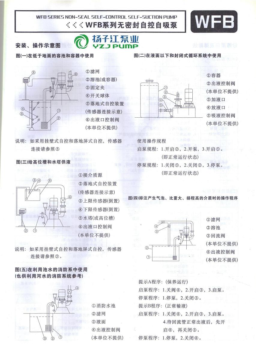 WFB型無(wú)密封自控自吸泵安裝操作示意圖