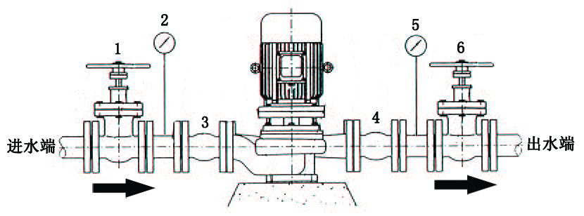 1、管道泵:管道泵是進(jìn)出口在同一直線(xiàn)上且口徑相同的離心泵,可像一段管道串聯(lián)安裝在管道的任何位置故取名為管道泵。其是根據泵的外形特診來(lái)定義命名的,若根據原理命名,管道泵是特殊結構的離心泵,而普通的離心泵可能是臥式端吸式的,也可能是立式多級離心式的。如下圖1: