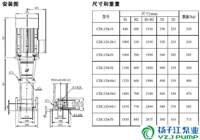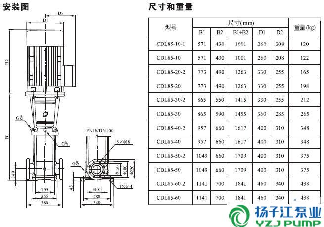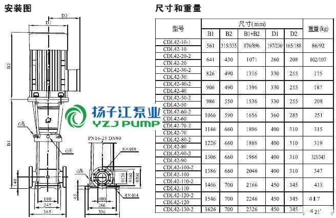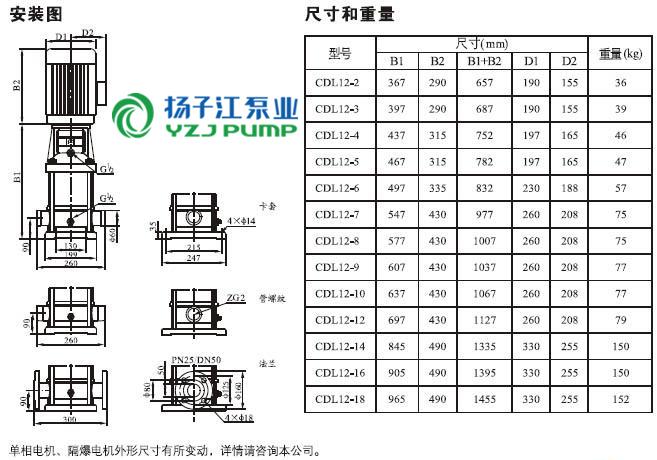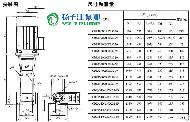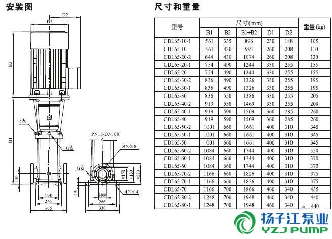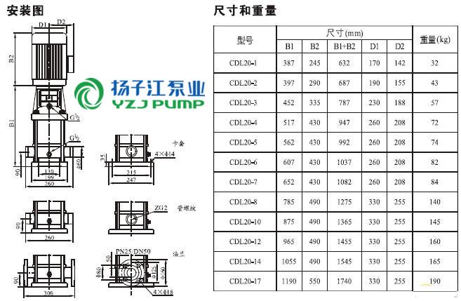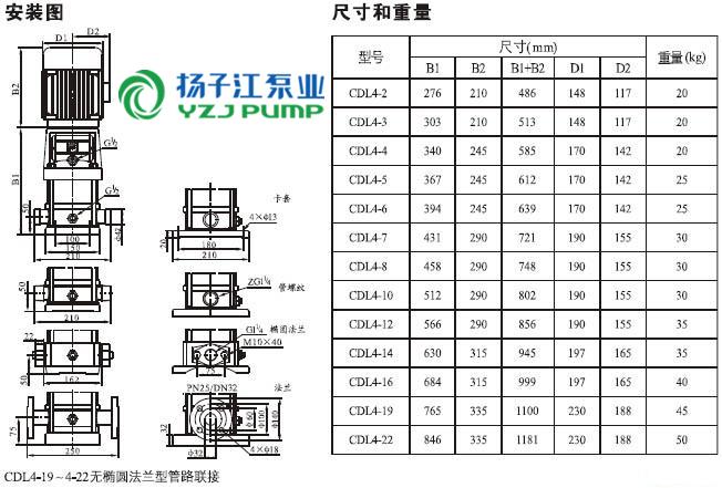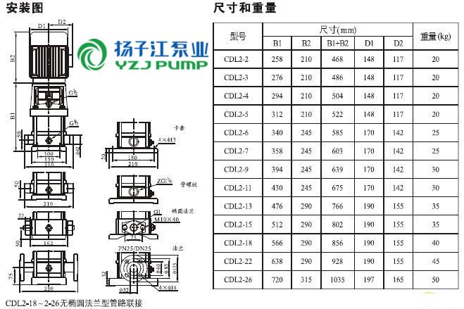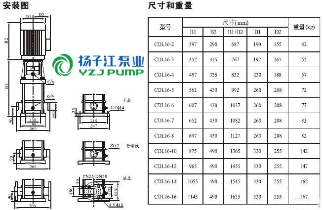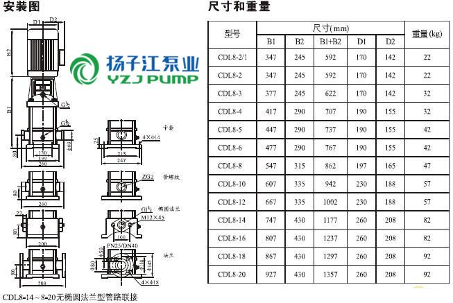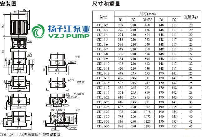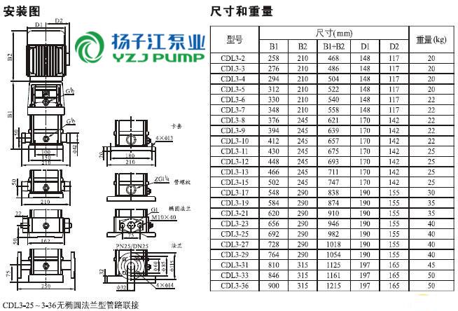 CDLF系列輕型不銹鋼立式多級泵安裝尺寸)