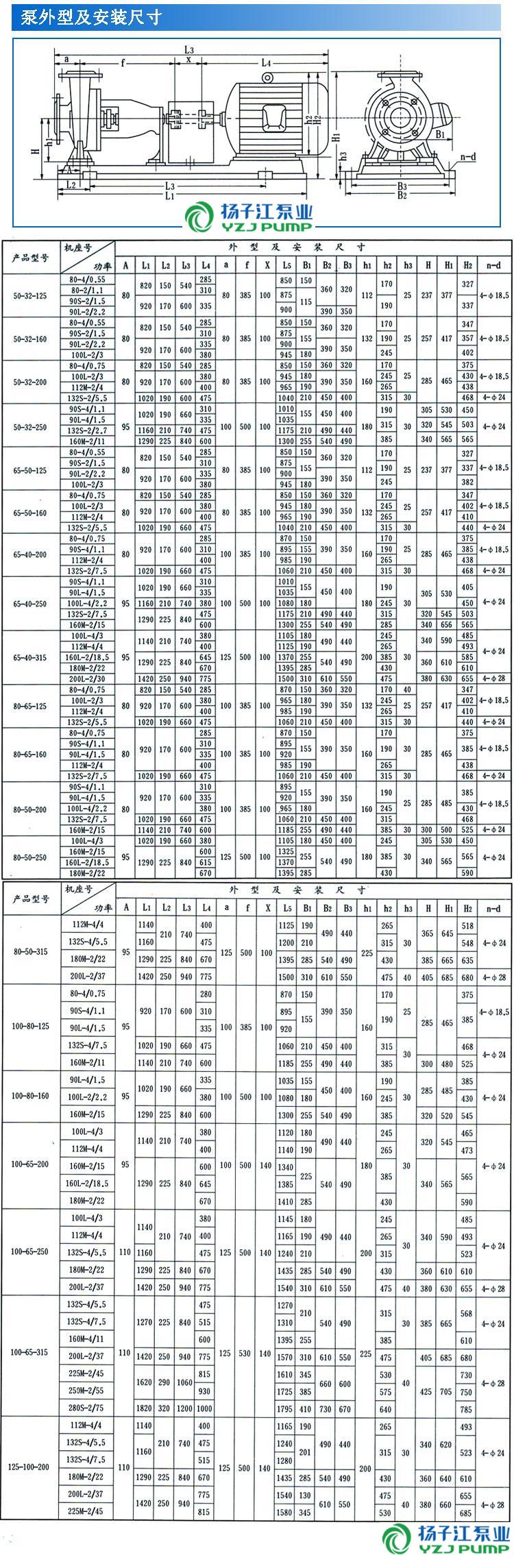 IH型不銹鋼化工離心泵(安裝尺寸)