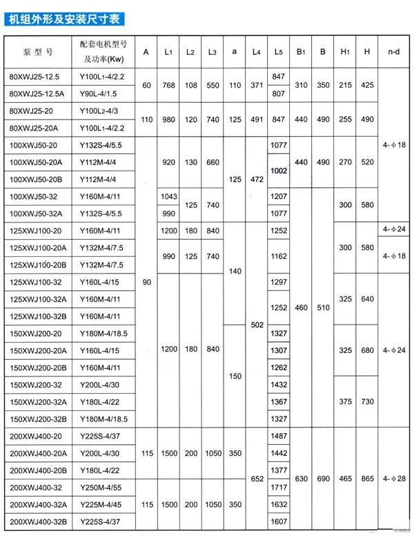 XWJ新型無(wú)堵塞紙漿泵(安裝尺寸)