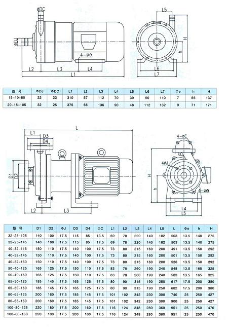 CQB-F型氟塑料磁力驅動(dòng)泵(安裝尺寸)