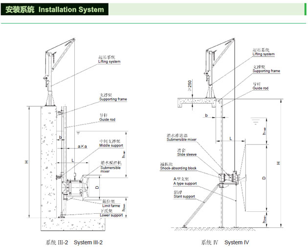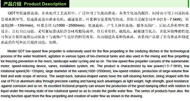 QJB型潛水攪拌機作為水處理工藝中的關(guān)鍵設備之一,在水處理工藝流程中,可實(shí)現生化過(guò)程中固液二相流和固液氣三相流的均質(zhì),流動(dòng)的工藝要求。它由潛水機葉輪和安裝系統等組成。潛水攪拌機為直連式結構。他于傳統的大功率電機通過(guò)減速機降速相比,具有結構緊湊,能耗低,便于維護和保養等有點(diǎn)。葉輪經(jīng)過(guò)精鑄或沖壓成型,精度高,推力打,流線(xiàn)性造型簡(jiǎn)潔美觀(guān)。該系列產(chǎn)品適用于需要固液攪拌,混合的場(chǎng)所。結構簡(jiǎn)圖如下: