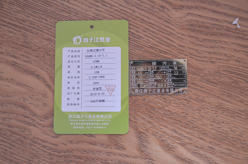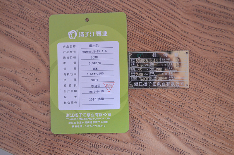 潛水泵產(chǎn)品合格證_浙江揚子江泵業(yè)有限公司