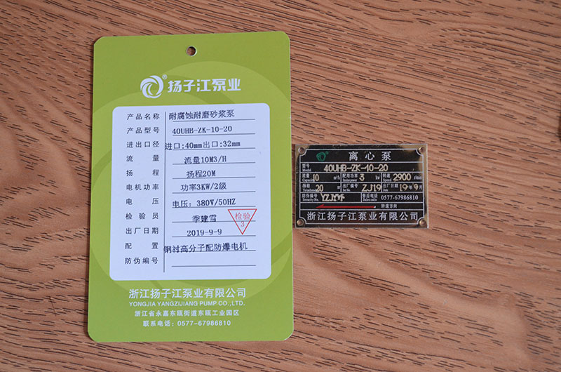 耐腐蝕泵產(chǎn)品合格證_浙江揚子江泵業(yè)有限公司