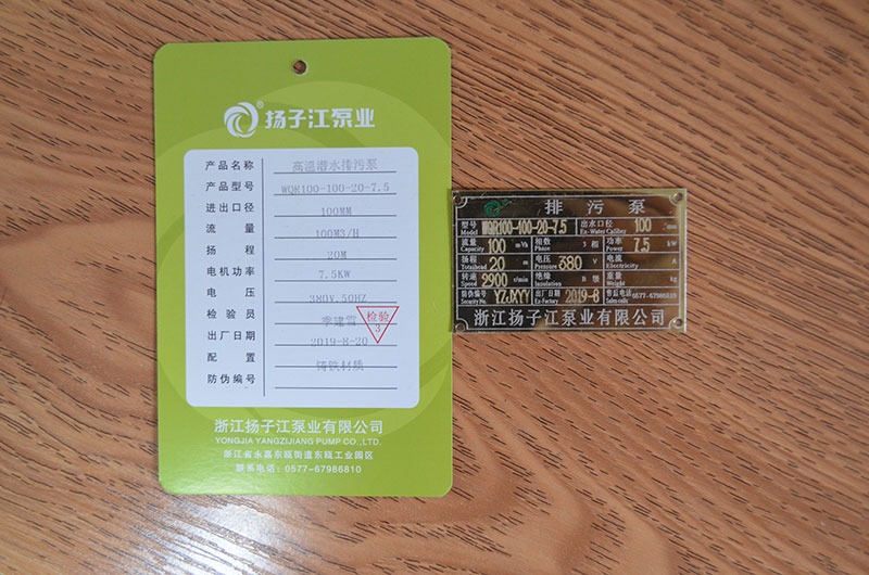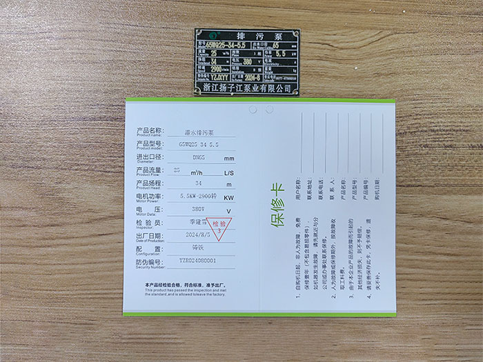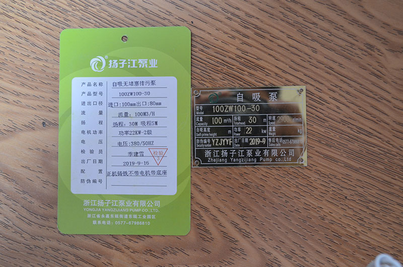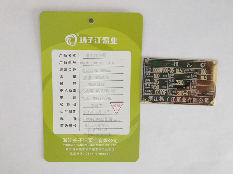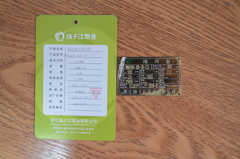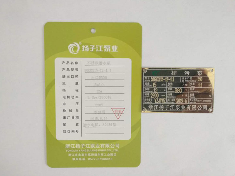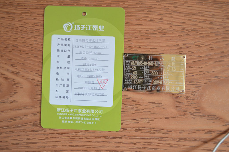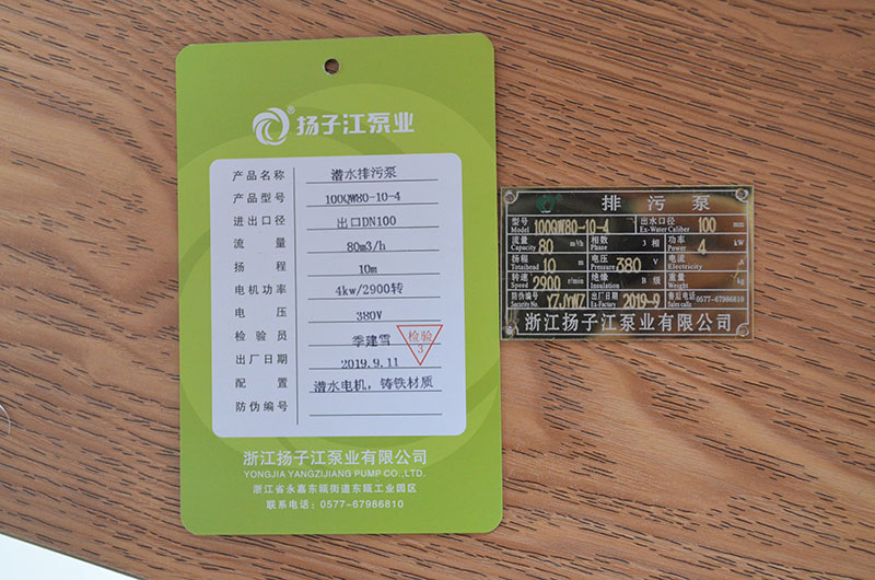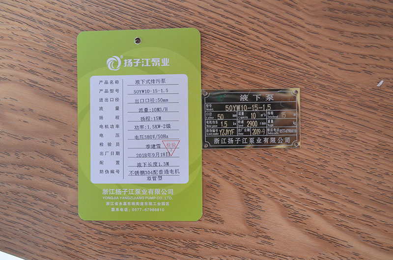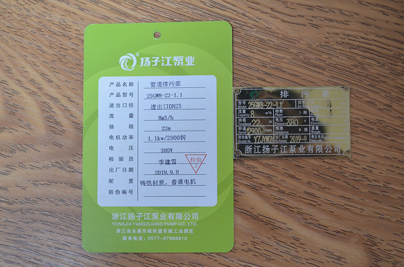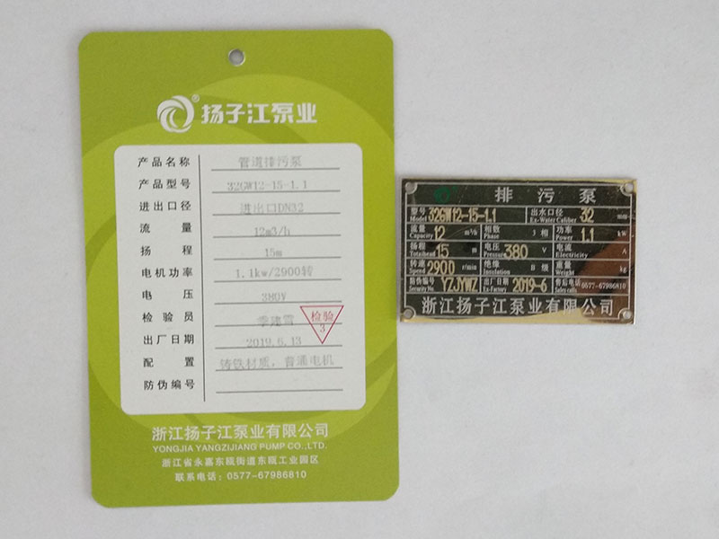 排污泵產(chǎn)品合格證_浙江揚子江泵業(yè)有限公司