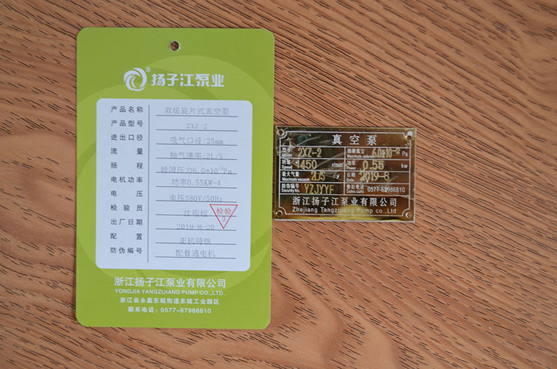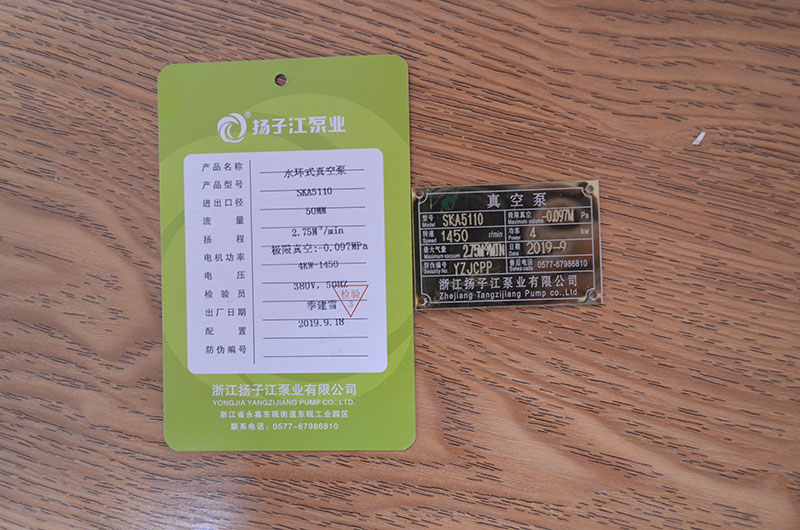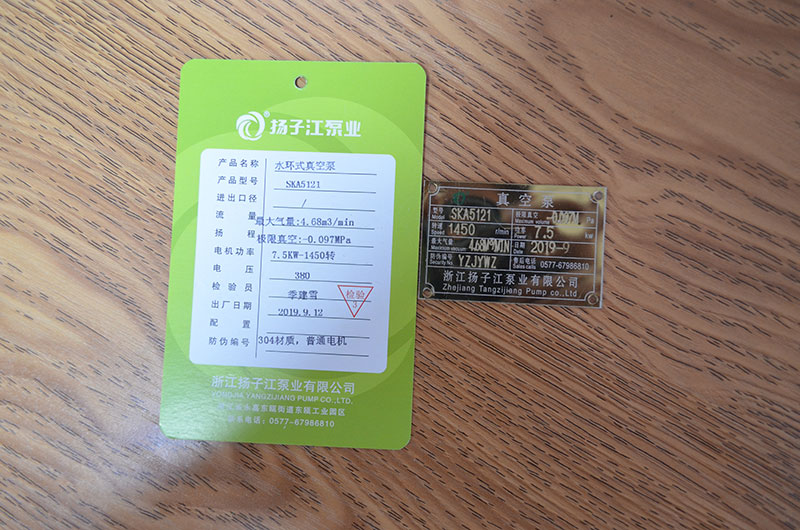 真空泵產(chǎn)品合格證_浙江揚子江泵業(yè)有限公司