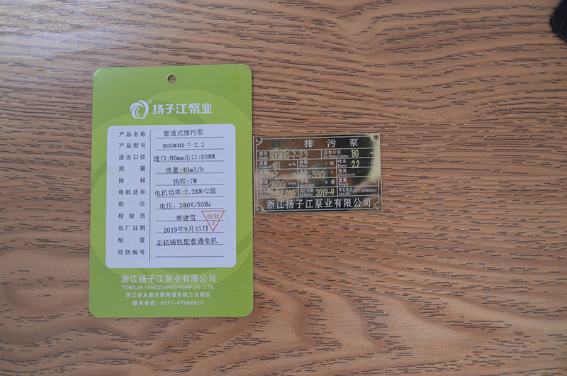 管道泵產(chǎn)品合格證_浙江揚子江泵業(yè)有限公司