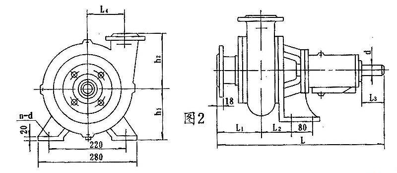 泵出口垂直向上,也可裝成水平方向,本泵由彈性聯(lián)軸器直接傳動(dòng)(亦可才艮據需要改用皮帶傳動(dòng))。
