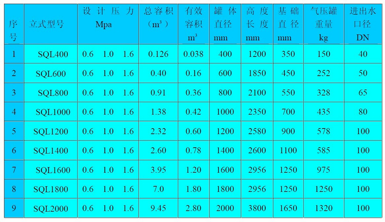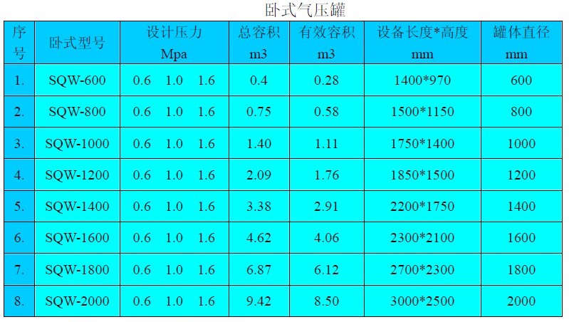 設計壓力:0.6Mpa ;1.0Mpa ;1.6Mpa