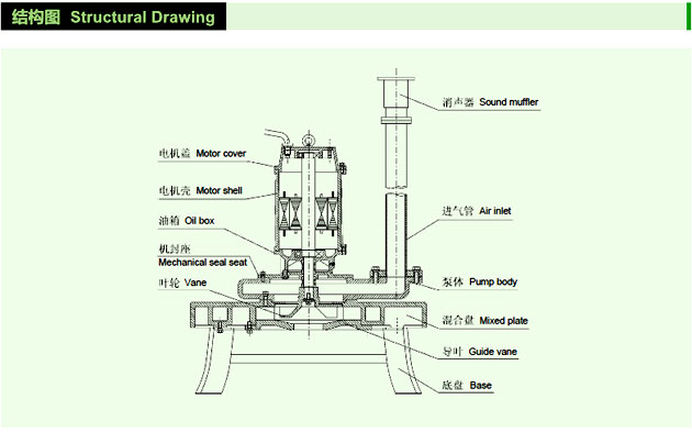 3、機體沉入水中運行,無(wú)噪音。進(jìn)氣管出水面可加裝消音器,增強消音效果。