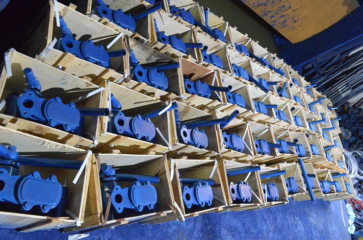每臺水搖泵有四只水閥,即吸水閥及壓水閥各二只,都裝在泵體上,只要拆除蓋板螺母,就可取出(參看水閥示圖)。