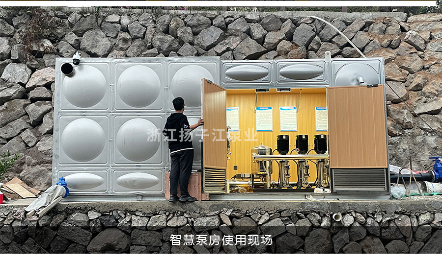 一體化智慧泵房由數字集成全變頻供水設備、管閥系統、網(wǎng)絡(luò )通信系統、視頻監控系統、門(mén)禁安防系統、通風(fēng)除濕系統、降噪減震系統、保溫隔熱系統等部分組成。