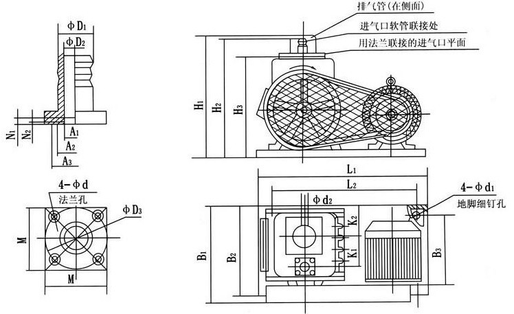 注:安裝時(shí)應小心,防止鐵屑、污物、塵埃等落入旋片真空泵內.