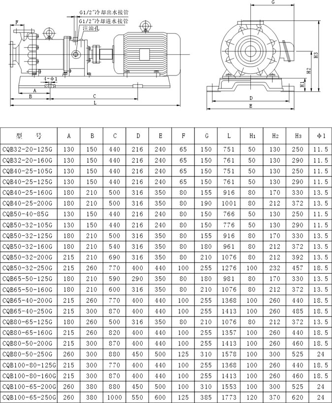 CQB-G型高溫保溫磁力泵性能參數