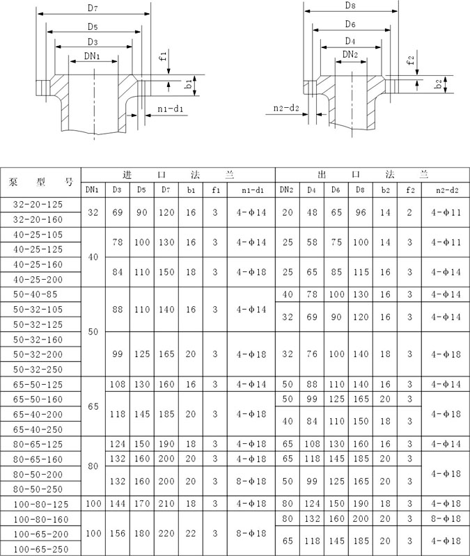 3、被輸送的介質(zhì)及其溫度應在泵材允許范圍內。泵的使用溫度<280℃,大工作壓力1.6MPa,密度不大于1840kg/m3,粘度不大于30cm2/S的不含硬顆粒和纖維的液體。特殊工況應嚴格按合同協(xié)議規定。